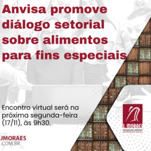 Fonte Anvisa Encontro virtual será na próxima segunda-feira (17/11), às 9h30. No dia 17 de novembro, das 9h30 às 12h, a Anvisa irá realizar um Diálogo Setorial Virtual sobre alimentos para fins especiais. O encontro tem como objetivo apresentar e discutir duas propostas normativas atualmente em elaboração: a proposta de Instrução Normativa (IN) que estabelece a atualização […]