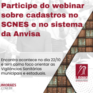 Fonte Anvisa Encontro acontece no dia 22/10 e tem como foco orientar as Vigilâncias Sanitárias municipais e estaduais. A Anvisa irá realizar, no próximo dia 22 de outubro, às 15h, o webinar “SNVS – Cadastros: SCNES e Anvisa”. O evento tem como objetivo orientar as Vigilâncias Sanitárias (Visas) estaduais e municipais sobre os procedimentos corretos […]